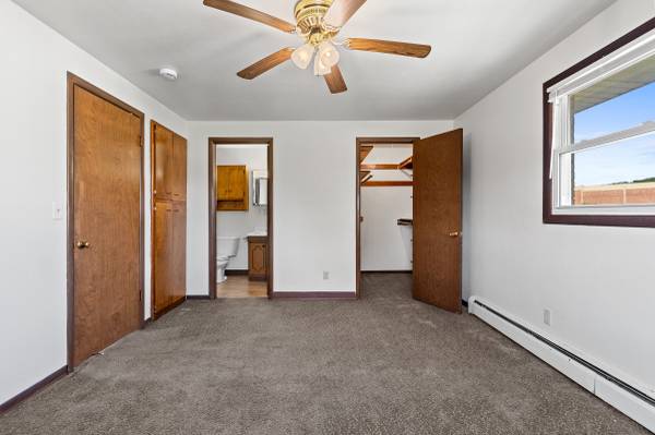 1 Bedroom upper coming available in January 2026. Apartment offers walk in closet in bedroom as well as fridge and stove in kitchen and wall unit air conditioner in living room. Plenty of cabinet space with open concept living room, dining room, kitchen. Large outdoor backyard area for recreation as well as 1 assigned parking space included in rent. Coin op laundry and storage is also available in the basement. All applicants will have full background check performed - $20. Call Becky to schedule a showing at show contact info