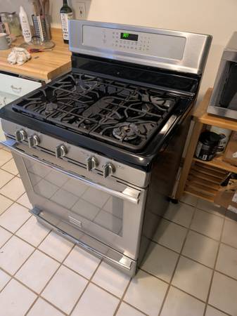 Frigidaire Professional FPGF3081KFK. All burners and igniters work. No scratches or dents. Oven works, but convection fan does NOT work. New blower motor costs around $100 online, fyi. No delivery,...