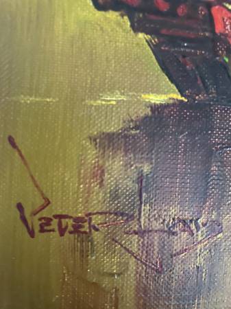 Chinese Junk Boat sailing into harbor at sunset – oil painting signed and framed – 13 ¼ X 15 ¼”
