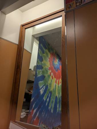 9ft Retail Mirror for sale. Beautiful Mirror. Wood Frame. Was previously used inside a retail chain. Mirror is 9ft 10 inches tall and 4ft 1inch wide. Mirror is very heavy. You will need to pick up.