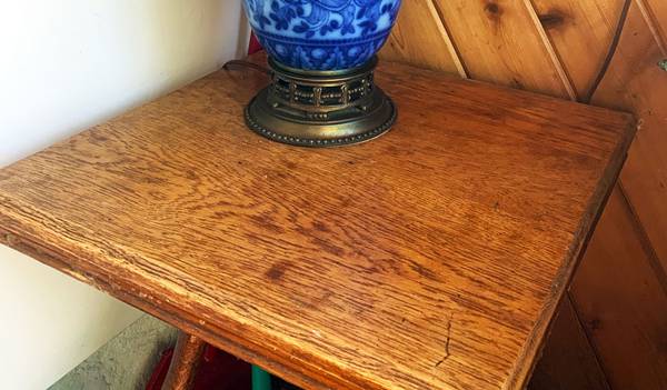 Oak Table and Lower Shelf. Top measures 20" X 20" and is 29" tall.