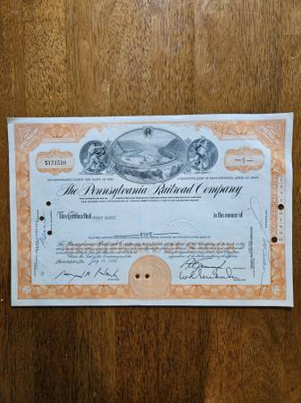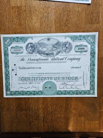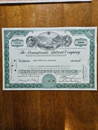 I have (6) old Railroad Stocks from the 1940's, 50's and 60's. They would be great framed and displayed above a model railroad. I'll take $10 each or all (6) for $50.