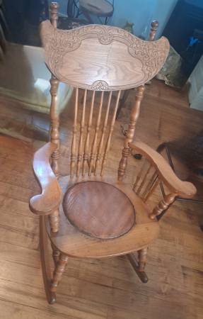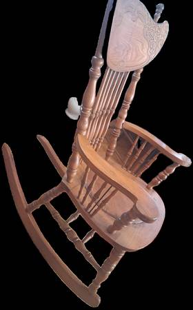 1870=1920s ) Ornate wooden rocking chair with embossed seat