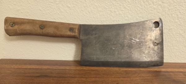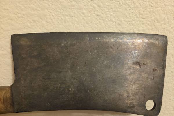 This is an antique Village Blacksmith Lexington #208 meat cleaver knife. It is in excellent used condition.