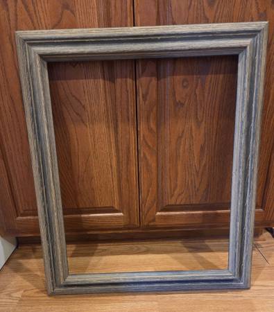 This vintage picture frame measures overall approximately 23" x 27" and the glass area measures approximately 18" x 22". This frame has a distressed appearance with a multicolored wood finish.