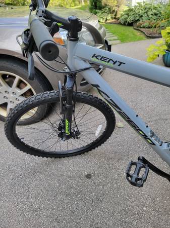 Kent K2600 mountain bike with a dual shock suspension. The bike was ridden very little and is still in excellent shape. It looks runs and rides like a new bike.