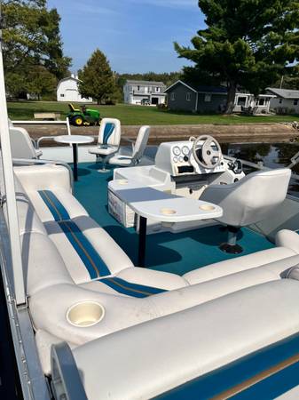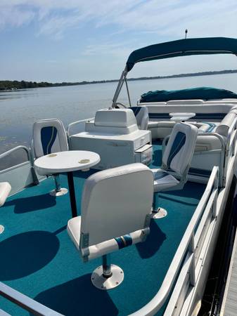 20’ Premier Sunsation pontoon. 50hp Mercury Bigfoot engine. EFI four stroke. Full cover. Dual axle trailer. Lift available separately.