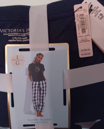 NEW with tags, womens Victoria's Secret Flannel Tee-Jama, lounge set. Size Large regular. Black, cotton crewneck tee. Relaxed fit, blk/wht/pnk, pant with logo elastic waist. Stored in non-smoking...