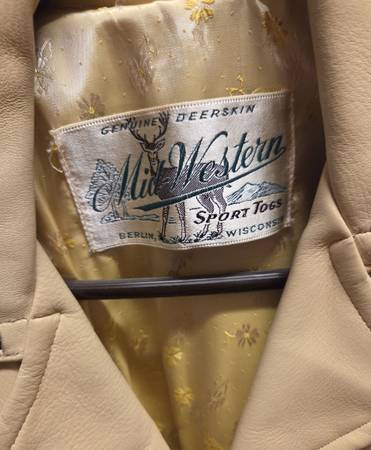 This Mid Western deerskin jacket was made in Berlin Wisconsin. It's in excellent used condition. The leather is very pliable.