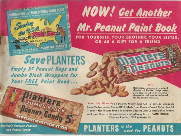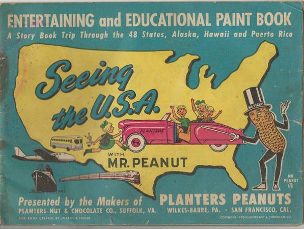 Collectable 1950 "Seeing the USA with Mr. Peanut" Coloring Booklet from Planters Peanuts