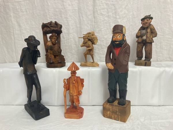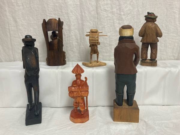 The carvings range from 6 1/2” in height to 13”. Each carving is $10.00 or take all six for $40.00. This is the deal of the day! Cash only.