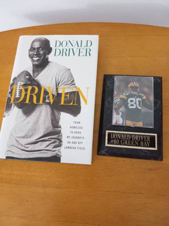 Donald Driver Collectibles: Brand New #80 NFL/Nike On-Field Jersey - Tags still attached Plaque: Donald Driver #80 Green Bay Book: DRIVEN From Homeless to Hero, My Journeys On and Off Lambeau Field...
