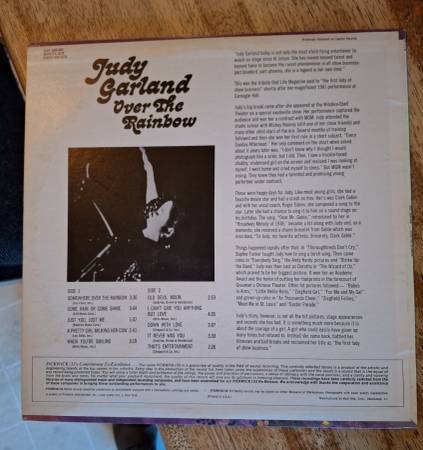 Judy Garland, Over the Rainbow. Wizard of OZ... Album recorded 1969. Excellent condition! Asking $15.00 Call or text