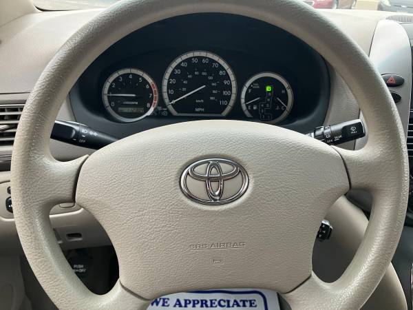 Check out the deal on this Toyota Sienna! ONE OWNER!! ONLY 112,000 MILES!! Fog lights, aux port, Captain chairs, and rear Stow-n-Go. Plus air, cruise, CD, power equipment, and more. Looks and runs great. Clean title, local trade. Warranty included. Stop in for a test drive today!