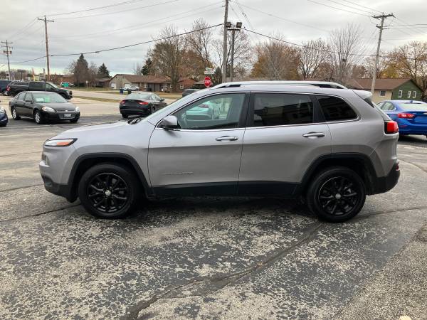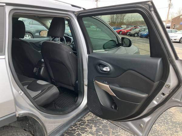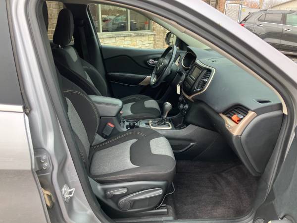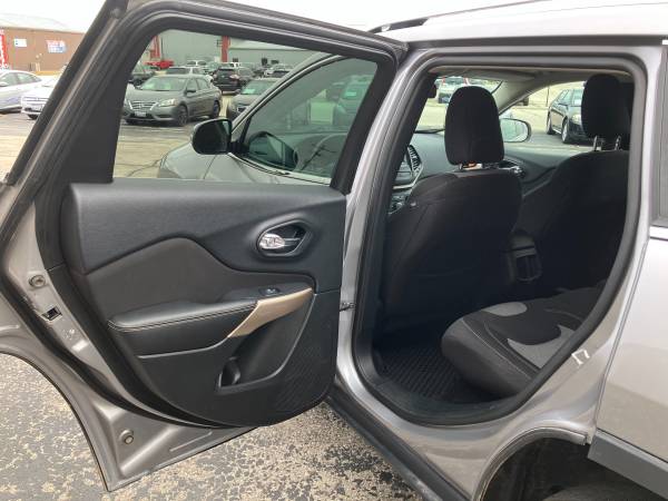 Check out the deal on this Jeep Cherokee Latitude! Heated cloth seats and heated steering wheel! Back up camera, remote start, and rubber floor mats. Bluetooth, touchscreen, aux port, and USB. Fog lights, roof rack, and tow. Clean title, local trade. Looks and runs great. Warranty included. Stop in today for a test drive!