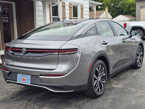 This 2023 Toyota Crown XLE is equipped with a 236-hp 2.5L Hybrid Powertrain, electronic on-demand AWD, heated front seats, blind spot monitoring and rear cross-traffic alert, lane departure warning and assist, adaptive cruise control, forward collision warning and emergency braking, rear vision camera, 12.3-inch multimedia touchscreen, 6-speaker audio system, wireless Apple CarPlay and Android Auto, and satellite radio, USB audio input, Bluetooth, four USB charging ports, wireless charging pad, audio controls on the steering wheel, 8-way power front seats with power lumbar, push button start, garage door remote, power windows and locks, dual-zone climate control, heated power folding side mirrors with turn signal, remote keyless entry, LED headlights and daytime running lights, 19-inch alloy wheels, and more. Clean CARFAX. Fully inspected and serviced. Covered under remaining Toyota 3-year/36K-mile Basic, 5-year/60K-mile Powertrain Warranty, 8-year/100K-mile warranty on hybrid related components, and 10-year/150K-mile battery warranty. High fuel economy, eye-catching style, elevated ride height, and a comfortable ride quality.. Print this page and call us Now... We know you will enjoy your test drive towards ownership!