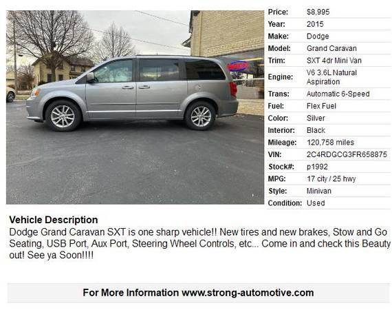 Dodge Grand Caravan SXT is one sharp vehicle!! New tires and new brakes, Stow and Go Seating, USB Port, Aux Port, Steering Wheel Controls, etc... Come in and check this Beauty out! See ya Soon!!!!