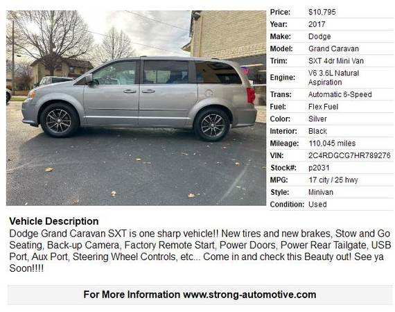 Dodge Grand Caravan SXT is one sharp vehicle!! New tires and new brakes, Stow and Go Seating, Back-up Camera, Factory Remote Start, Power Doors, Power Rear Tailgate, USB Port, Aux Port, Steering Wheel Controls, etc... Come in and check this Beauty out! See ya Soon!!!!
