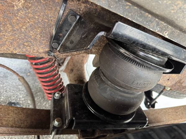 MADE heavy duty in rear. Air bags in back with pump in cab with gauge and release fill / button - For hauling more weight