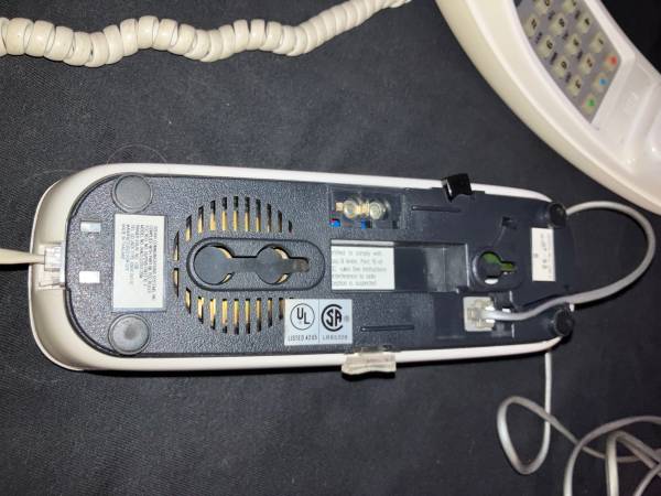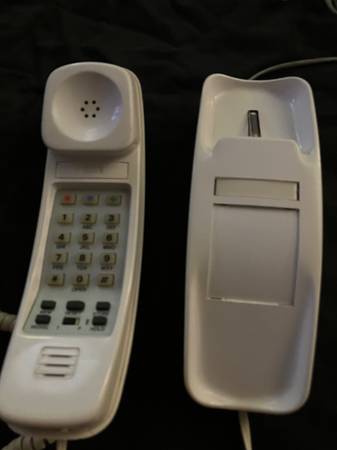 Vintage GTE Slimline White telephone with multiple features( see photos).This corded Landline phone is nice and clean and works well. Included phone connector cord is approximately 14 feet.