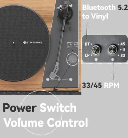 Adjustable Anti Skate Control, Adjustable Counterweigh, Built In Speaker, Built-In Bluetooth Receiver.