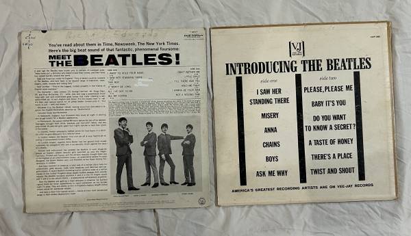 Meet the Beatles, 1964 Vinyl LP. Capital records 12" LP T-2047 HI-FI 33 RPM Introducing the Beatles, 1964 Vinyl LP, VJLP 1062 Vee Jay 33 RPM