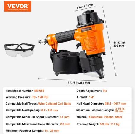 Air Coil Nailer 1 inch to 2-1/4 inch - $100 (Denmark)