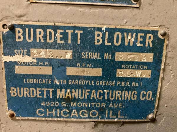 Burdett Blower Hot Air Mover Size 2412..B 12 Blade Squirrel Cage 30 Inch Inlet 21.5 Inch x 24 Inch Outlet Counter Clockwise Rotation No motor Overall Size 50 Inches Long x 43 Inches Wide x 51 Inches...