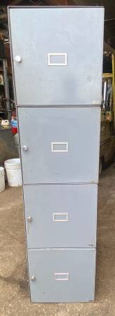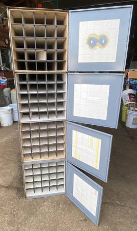 4 Stackable Metal Cabinets Each cabinet has 25 sections Sections are 2.75 inches x 2.75 inches Each cabinet is 15.75 inches wide 15.5 inches tall 38 inches deep $30 each Take 1 or all We will load...