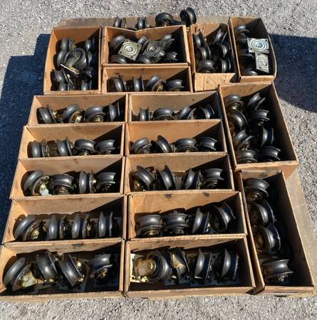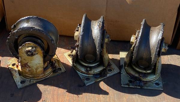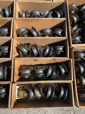 Pipe Track Guide Rollers - Wheels U-Groove 4 inch diameter 1.75 inch OD 1.25 inch ID For 1.25 inch pipe track All swivel 4 hole mounting plates 78 Available $5 each Contact Jerry 9-2-0-6-8-4-9-9-9-9