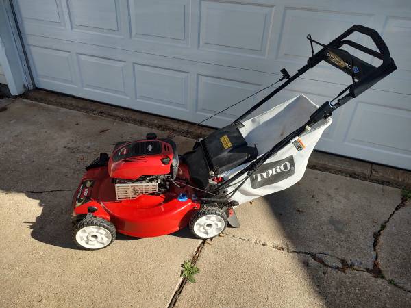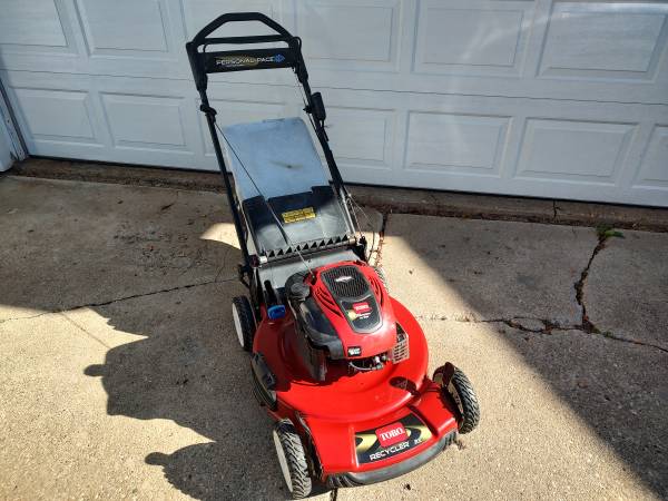 toro personal pace mower, mulch, bag or side discharge, 2012 model, starts easy, runs good, sharp blade, fresh full synthetic oil change, like new condition, electric start works nice, new battery and battery charger. can be delivered, $240, ad will be deleted as soon as it sells.