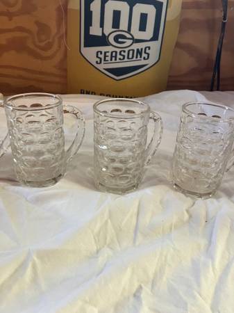 Here is a set of dimpled beer mugs. Looking for $30.00 OBO for the set. I have to wash them yet also. Thanks Bob