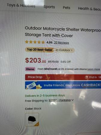 Shelter for bikes, motorcycles or firewood etc. Brand new still in box! $100