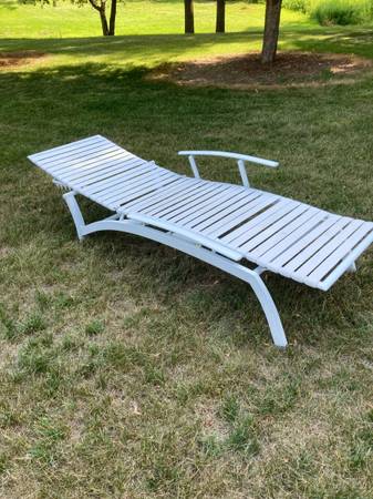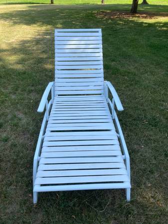 Chaise Lounge commercial grade quality, Vinyl straps, multiple positions. Back also lays flat, has adjustable arms. $59.00
