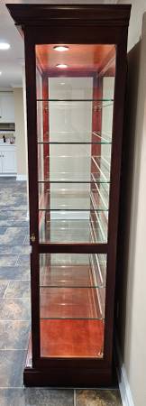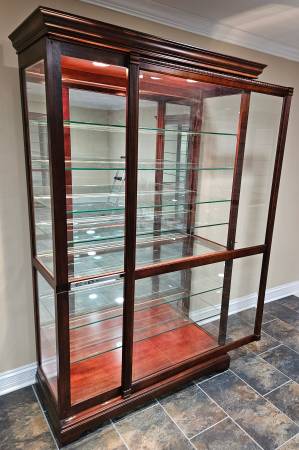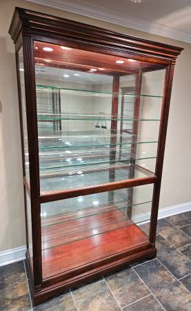 3-HOWARD MILLER 680-235 DISPLAY CABINETS IN EXCELLENT CONDITION. $1200.00 EACH 8- SHELVES TOTAL 7- GLASS 50''W X 21.5 D X 80 H 280 LBS
