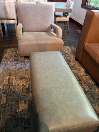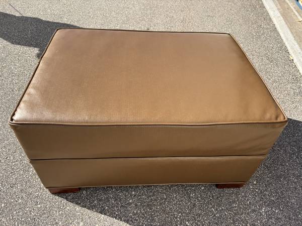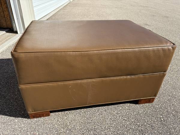 pics 1-3 brown shiny vinyl textured ottoman $10 each (that’s right! $10 like new!)