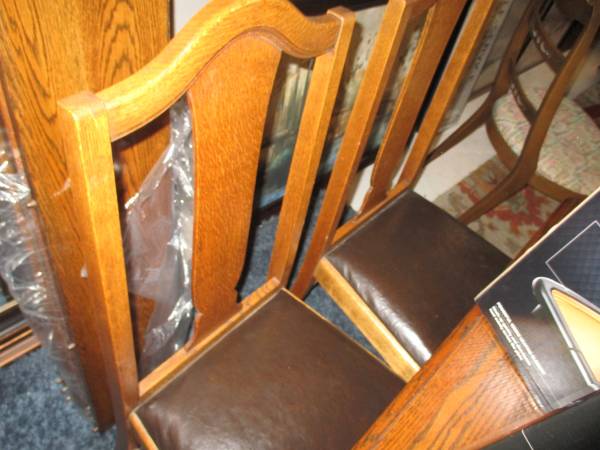 Antique Dining Table 6 Chairs 8 Leaves w/Storage holder - furniture...