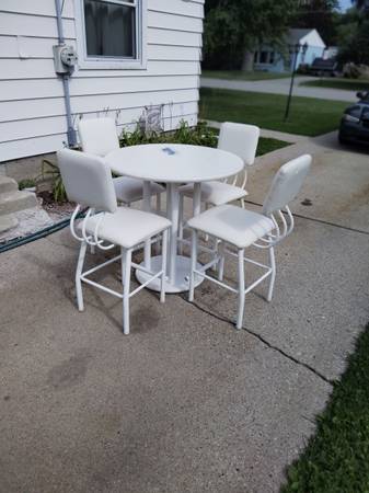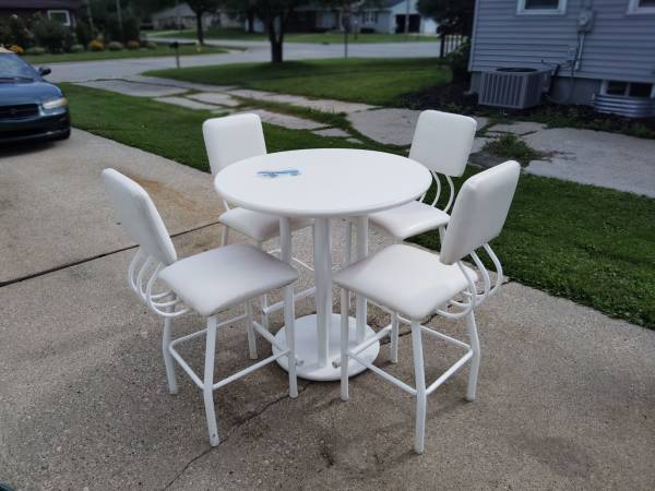 White pub table with 4 chairs. Table is 3 feet tall and 3 feet wide. Chairs are 2 feet tall. Good condition. $100.00 or nearest offer. Text . Text only. Calls will be deleted.