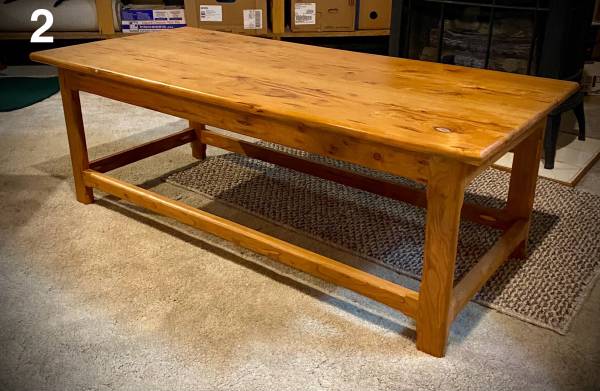 2. Cherry coffee table; 45”L x 20 1/4”W x 16 1/4” H; $200