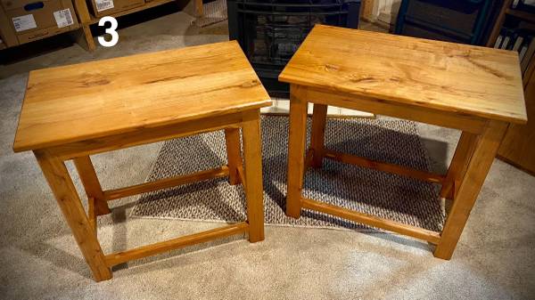 3. Cherry end tables; 24”L x 14 1/2” W x 23 1/4” H; $100 each. Two available.