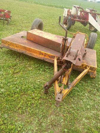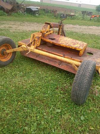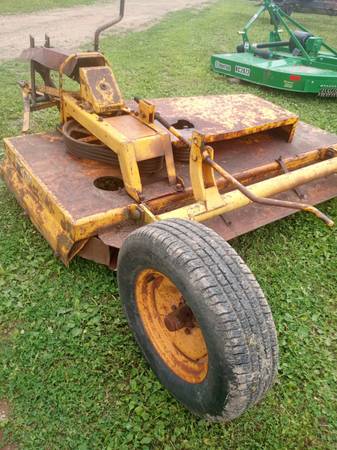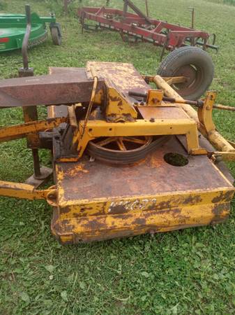 6' offset brush cutter, pull type, in good working condition,, easily adaptable to hydraulic lift, good tires, field ready