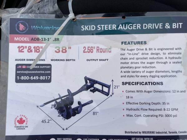 I have SEVERAL BRAND NEW Skid Steer Auger Attachment sets with 12” and 18” augers for sale that are at a REDUCED PRICE for a quick sale at $1,395.