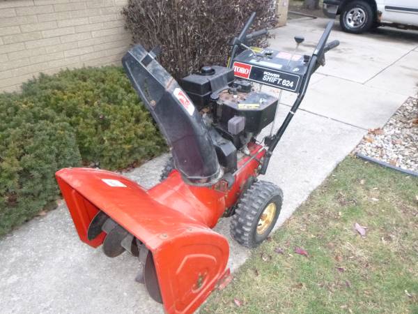 Electric start. Pull start works too. Starts on first pull. Fresh carb clean. Tires hold air. New spark plug. Fresh oil change. Drive works good. Auger works good. Chute turns easily. 6hp Tecumseh motor. Clean.