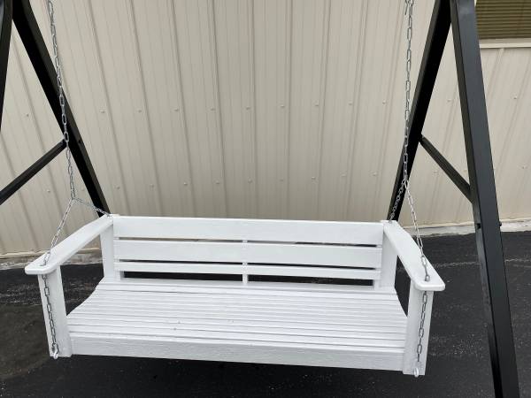 Old time back yard swing, built to last. Heavy duty cedar bench. Nice to have for back patio or fire pit area Cash only