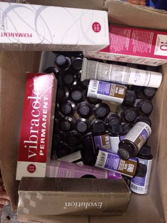 Professional salon hair colors, glazes ect. $5 each or can work out deals if bought in lots or entirety. Many of the smallest bottles sell for 7-9 a piece on ebay & the boxed taller ones range...