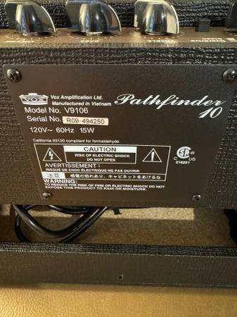Guitar, cords, shoulder strap and Case, Vox Pathfinder 10 amp $195.00