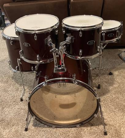 Included: 12" Tom, 13" Rack Tom, 14" Snare, 16" Floor Tom, and 22" Bass Condition = Good, bottom heads could be replaced
