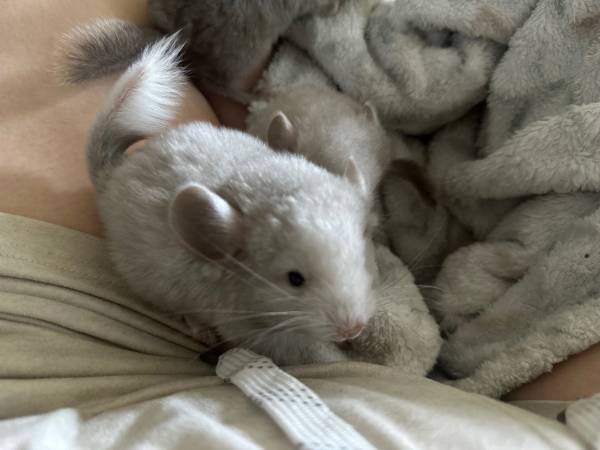 I have two 5 month old chinchillas boys. Asking $300 for all. What’s included: Cage Food & water bowls Wheel Hut Pellets