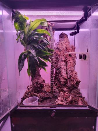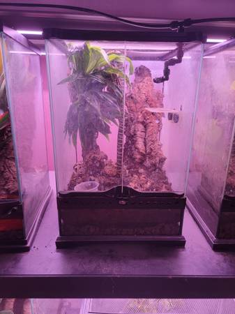 Hello, available is one of my frog butt(tailless) crested geckos and his bioactive enclosure. I hatched this gecko and grew it out. I have the hatch date. Asking $150 with enclosure. $50 without enclosure. Mist system not included. Call or text Tyler. NINETWOZERO-901-09FOURFOUR. I do have some others available if multiple are wanted. Thanks for looking, have a great day!