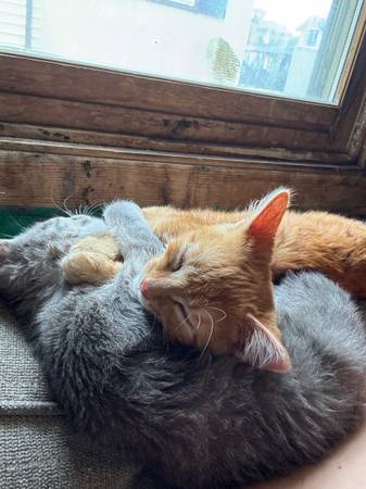 10 month old male kittens to good homes 1 orange tabby 1 grey tabby Very affectionate. Indoor only.
